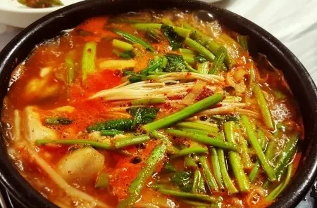 Sup pedas dan kental khas Korea yang terbuat dari pasta kedelai fermentasi .Sup ini memiliki aroma yang kuat dan khas.