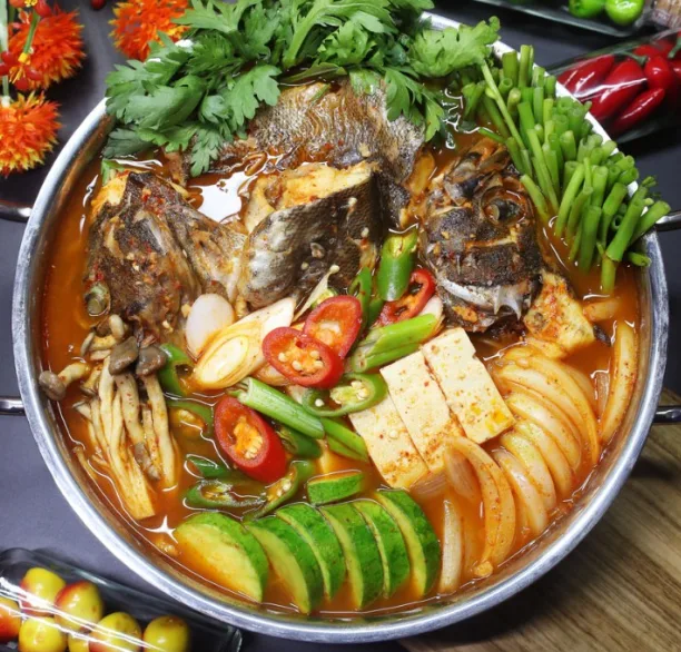 Sup pedas dari ikan rockfish segar, dipadukan dengan sayuran dan bumbu khas Korea yang menggugah selera.