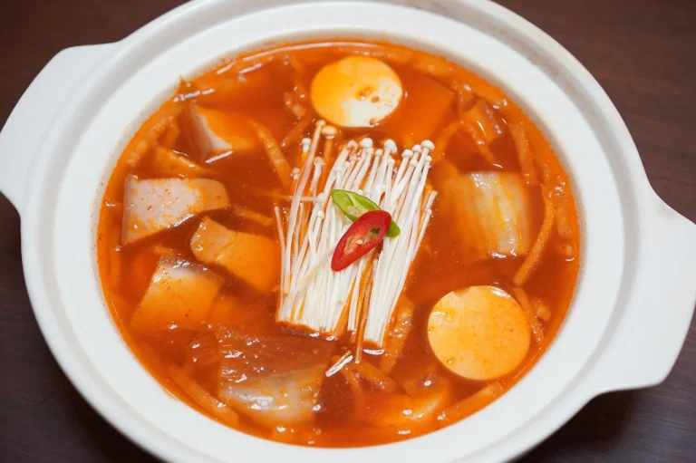 Sup hotpot berbumbu pedas berbahan dasar kimchi, dimasak bersama daging dan sayuran segar untuk rasa yang mendalam